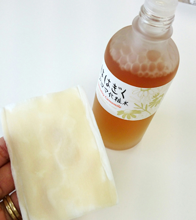 こんな感じで、コットンパックを5分ほど。カモミールとラベンダーの良い香り♪
