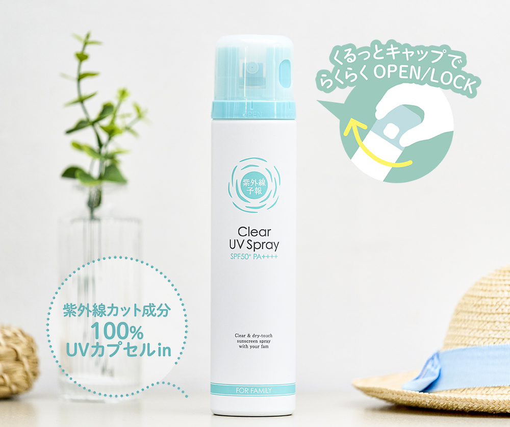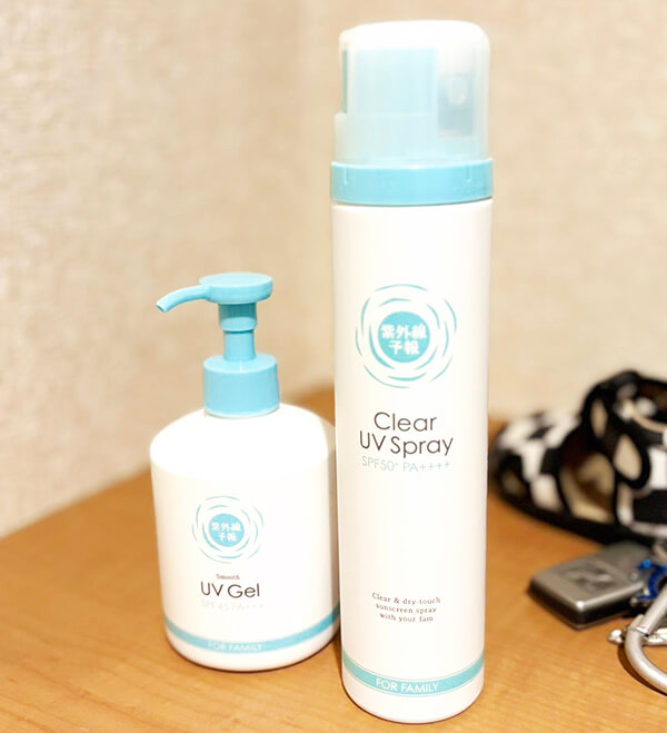 『透明UVスプレーF』は1歳から使えるので、一番下の子にもシューッ!