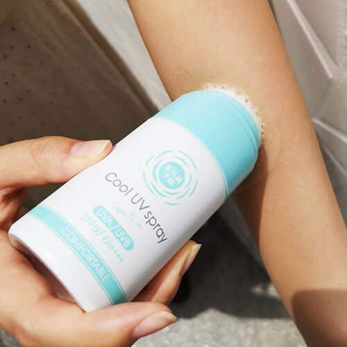 続いてオススメしたいのは「冷たいUVスプレーP」。暑い日のお出かけには欠かせない、紫外線予報シリーズの日やけ止めで、一番<冷たさ>を感じる日やけ止めです。