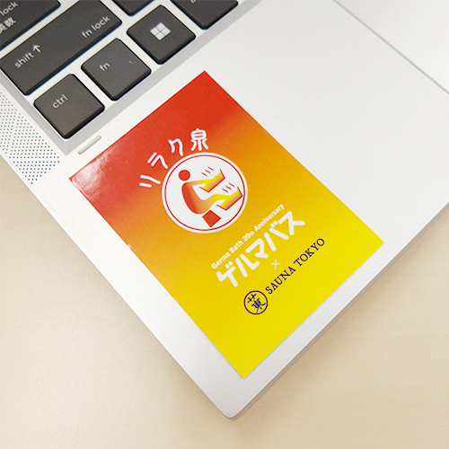 イベント開催中は受付カウンターにて、『リラク泉 ゲルマバス×サウナ東京』のコラボステッカーをプレゼントします!