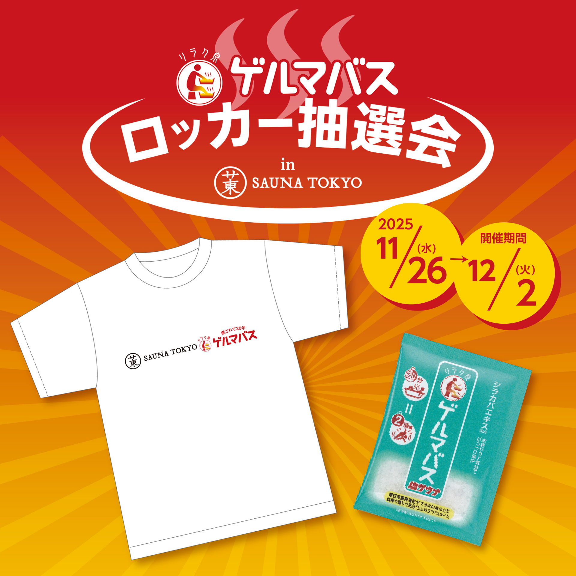 『リラク泉 ゲルマバス』20周年を記念したコラボイベントは2025/12/2まで!ぜひ「サウナ東京」へ遊びにきてくださいね♨️
