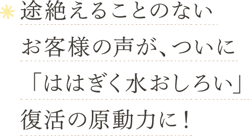 復活を喜んでくださったお客様から、喜びのコメントが続々届いて…