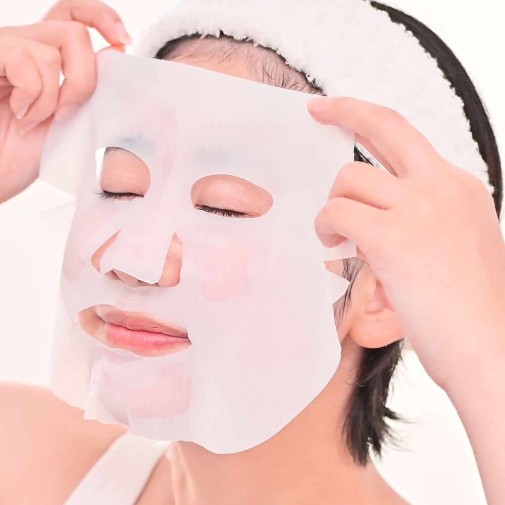 美容液をたっぷり含んだシートマスクが肌にしっかり密着。使用後はもちもちとした肌触りに。乾燥する季節やエアコンの効いた室内でも、うるおいをキープ。