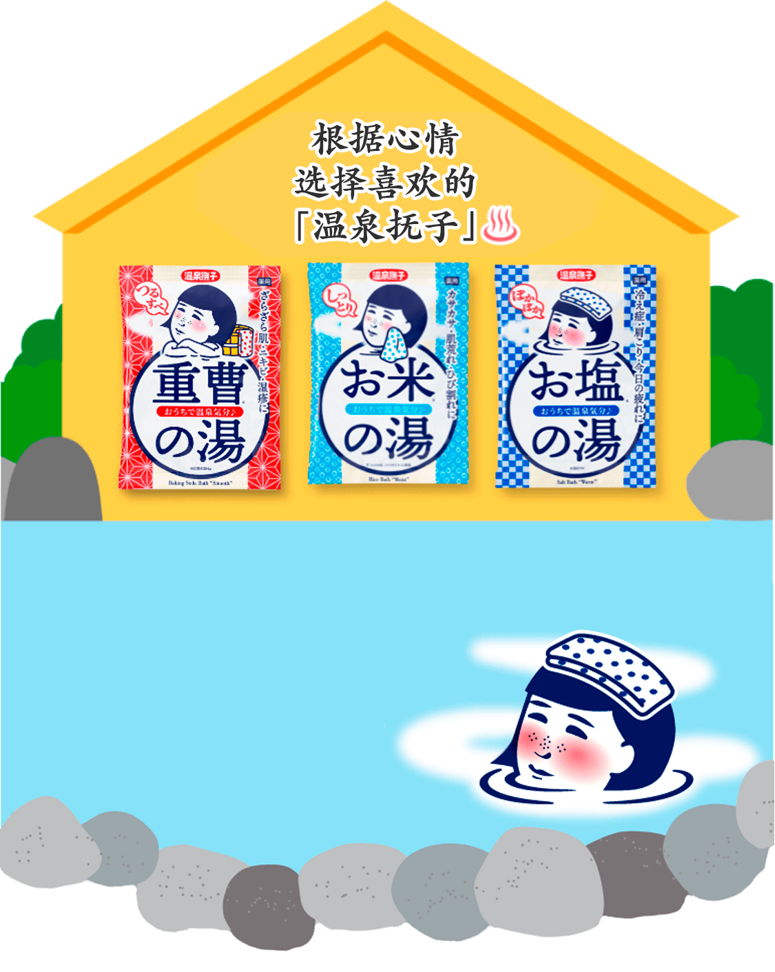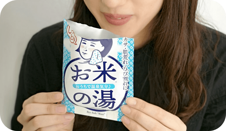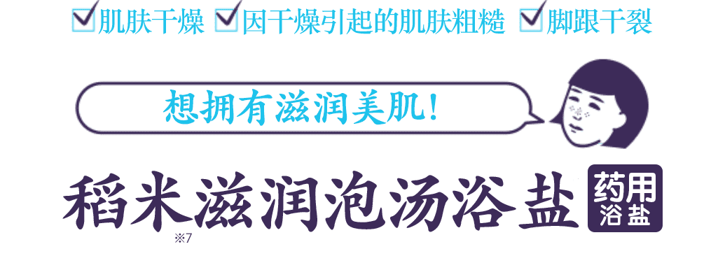 “好烦恼全身的干燥~”的時候,含有温泉矿物质※8和稻米※9的“日本米滋润泡汤包”。只需泡一泡就全身滋润。安静沉着的花的香氣。泡澡水触感柔软,滋润♨有弹性,变身肌肤滋润柔嫩的出浴美人。