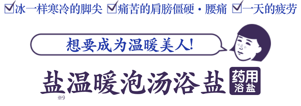 “今天一下子感觉好累啊~”这样的日子里,推荐含有温泉矿物质※10和盐※9的「温泉抚子 盐温暖泡汤浴盐」。泡一泡神清气爽!全身暖和。感受平静大地般的木质香气。