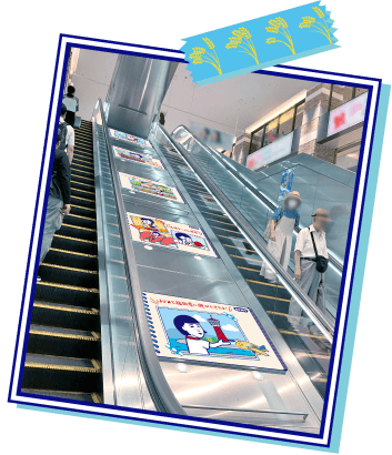 北口階段に巨大な「お米のマスク」、