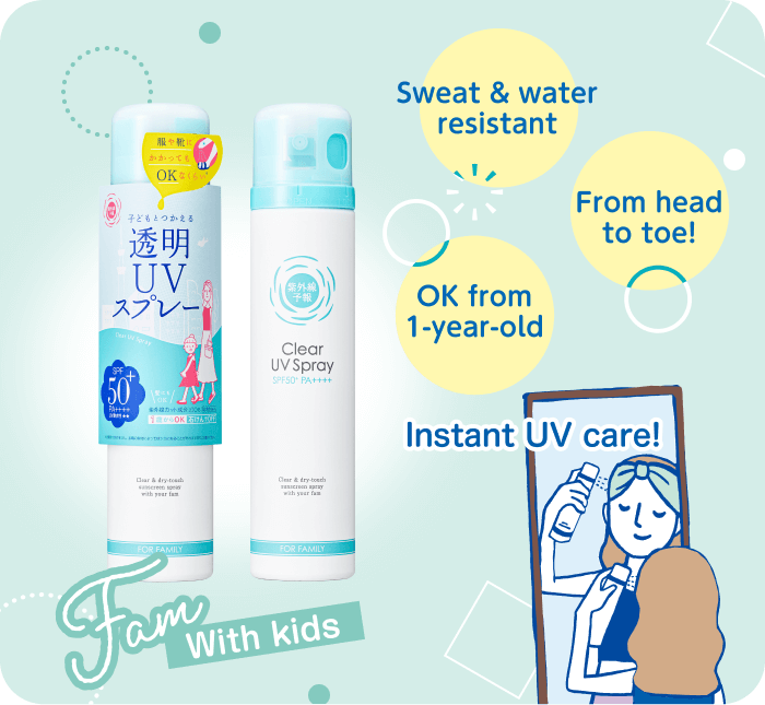 UV-yohou Clear UV Spray F is a large-sized sunscreen for hair, body, and face.